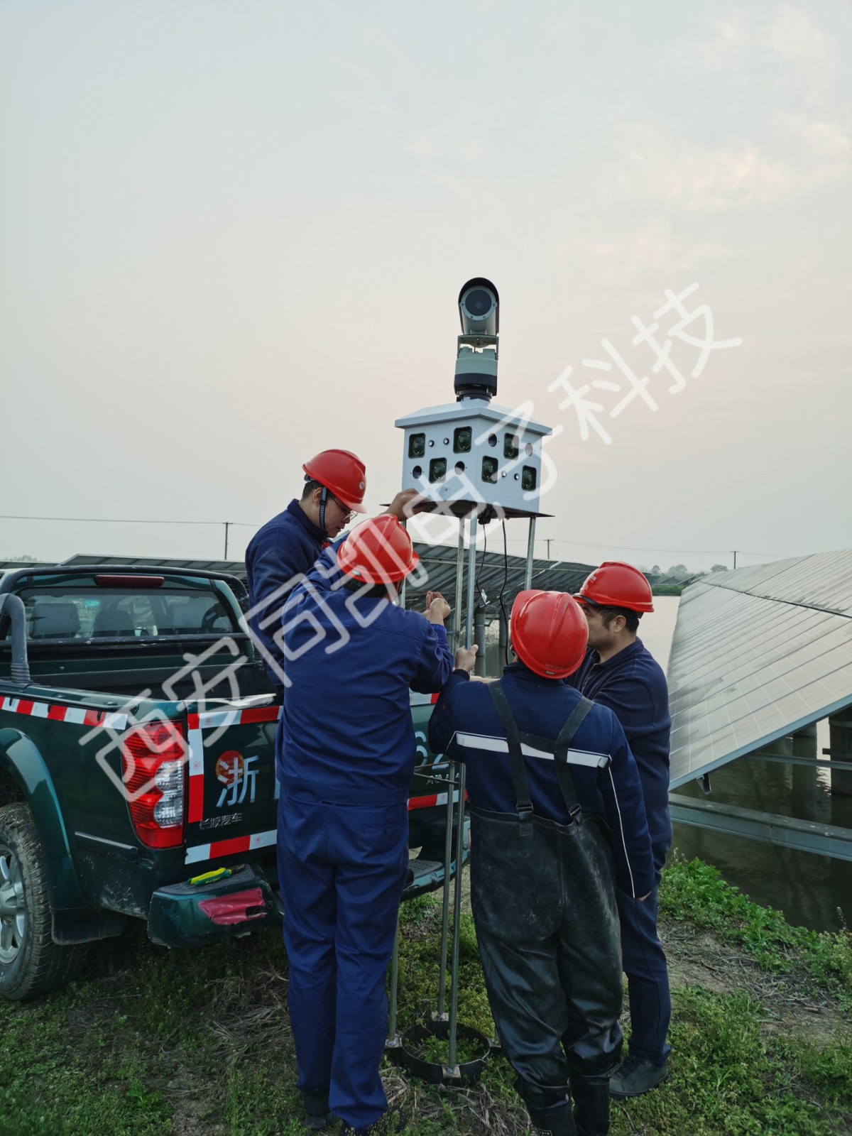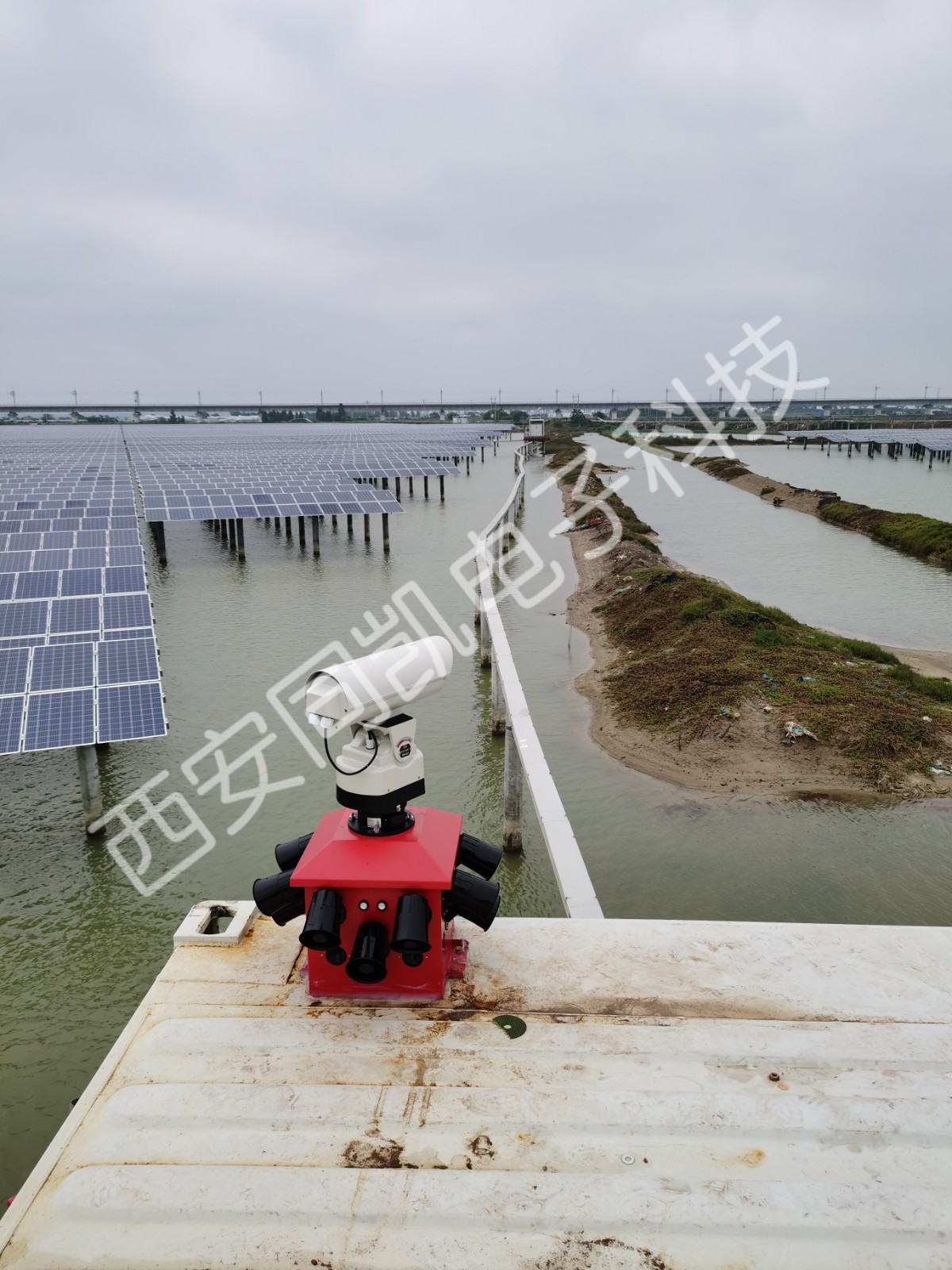 同凯驱鸟光伏驱鸟技术于2020年5月安装于某太阳能科技公司。该光伏电站属于渔光互补型电站,面积较大,因为在水面上,鸟主要有常见的野鸭,白鹭,丹顶鹤,鹧鸪等大型鸟类,在调研后,公司技术人员针对现场环境制定了相应的驱鸟方案,并得到了用户的认可。
