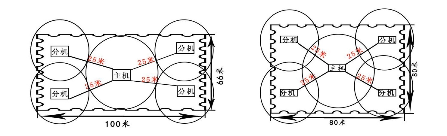TK81集束冲击波驱鸟器在果园安装过程中,分机应与四周边缘地带≤10m;在鸟来源方向控制在7米以内。主机任选两个分机接口!