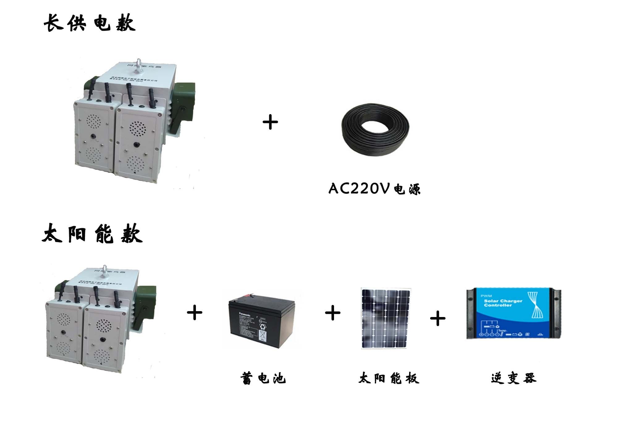 2、连接电源:将驱鸟器电源开关处于关闭状态,将电源插头插入220V交流电源插座内。